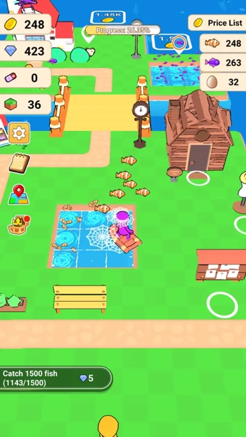 Here you can become the owner of a fishery. Manage your fishery, and expand your fishery by breeding and catching all kinds of fish, planting fruit trees, etc.!