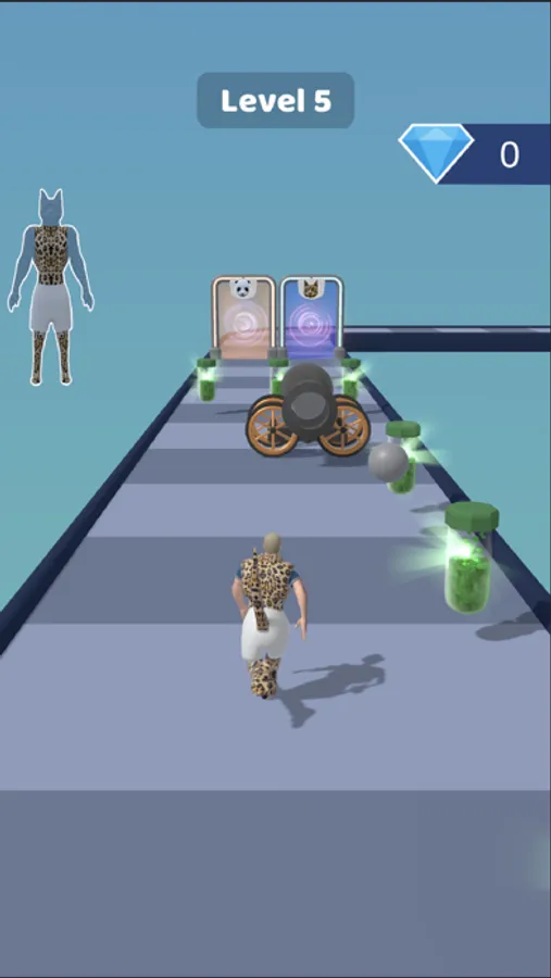 Collect green tubes to return into animals. But when you get red tubes, you are returning into human back. Collect green tubes as much as you can!