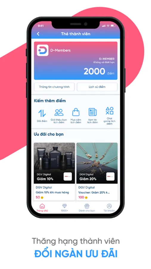 Với DPoint, bạn có thể dễ dàng tích điểm thành viên, quy đổi những voucher giá trị, thăng hạng thành viên nhận ưu đãi độc quyền, giúp bạn tiết kiệm hơn trong việc chi tiêu, trở thành người tiêu dùng thông minh. Ngoài ra, DPoint còn tích hợp nhiều chương trình tin tức, giải trí, thông qua đó dễ dàng nhận thêm ưu đãi.