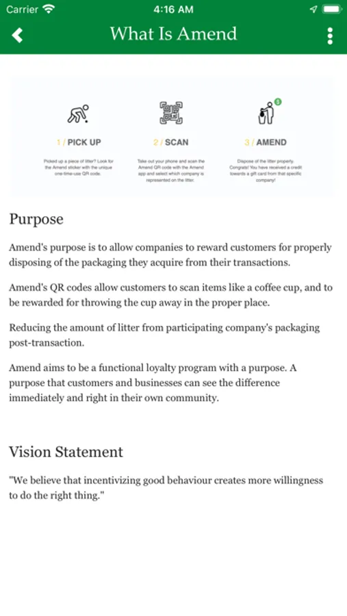 Amend partners with local businesses that care about making a difference. There is also a tangible incentive, that is that litter is bad advertising. People who see litter from that same company more than once begin to create a negative connotation with that company. That tangible incentive is what we believe will make reducing litter more than just a good cause, but something all businesses will pursue. That is the value for companies and that is how Amend rewards you for throwing out your/other people's garbage.