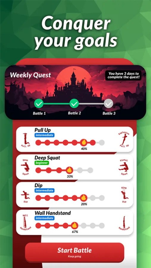 Unlock the secrets of calisthenics and bodyweight training, step by step, as you master legendary skills and movements like Muscle Up, Handstand or Planche. Over 100 goals are waiting to be conquered, are you up for the challenge?