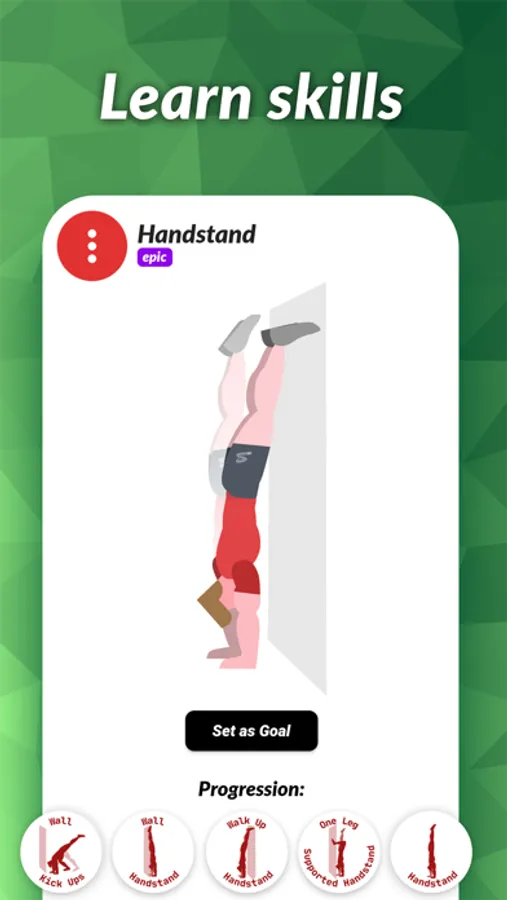 Skills: improve your balance, learn the Handstand with comprehensive progressions and unlock elite skills like Straddle Planche or the Full Planche.