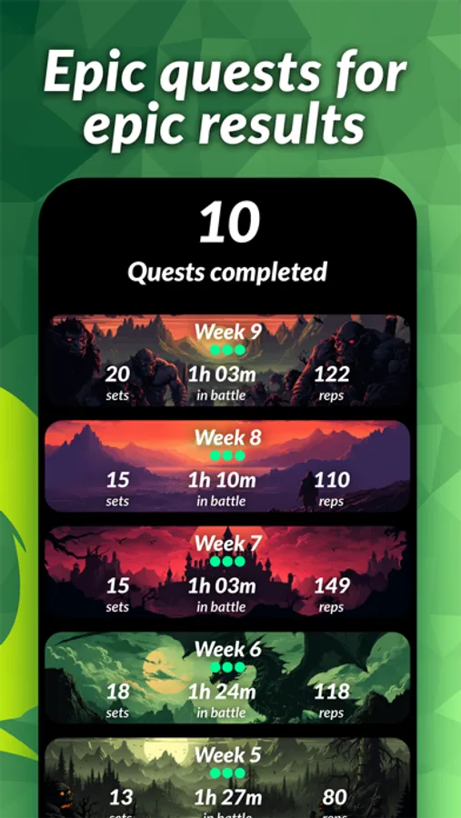 - Week streaks, quests and records!