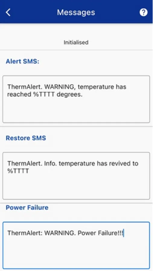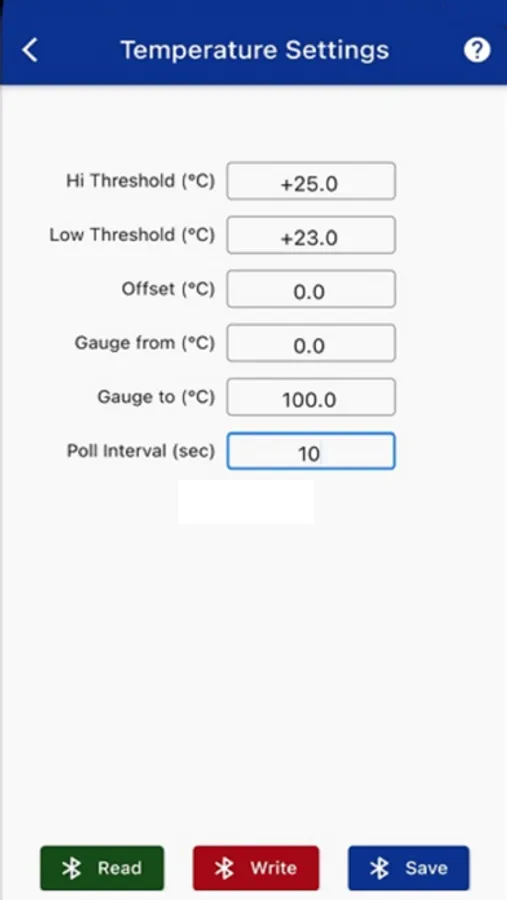 The mobile app is used to setup the ThermAlert temperature monitoring and Alert System. It uses bluetooth to connect to the equipment.