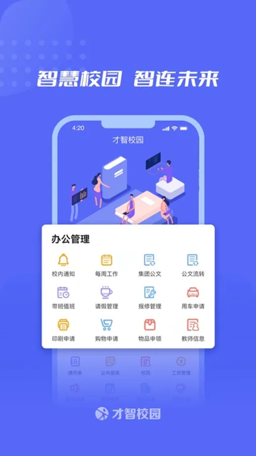 才智校园为教师和家长提供全方位的移动端平台,将家校互动、班级管理深入整合,帮助老师便捷化管理,帮助家长及时掌握孩子在校情况,包含了学校通知,OA审批、消费管理、考勤管理、请假管理等功能,整个流程设计快速便捷,科学准确。