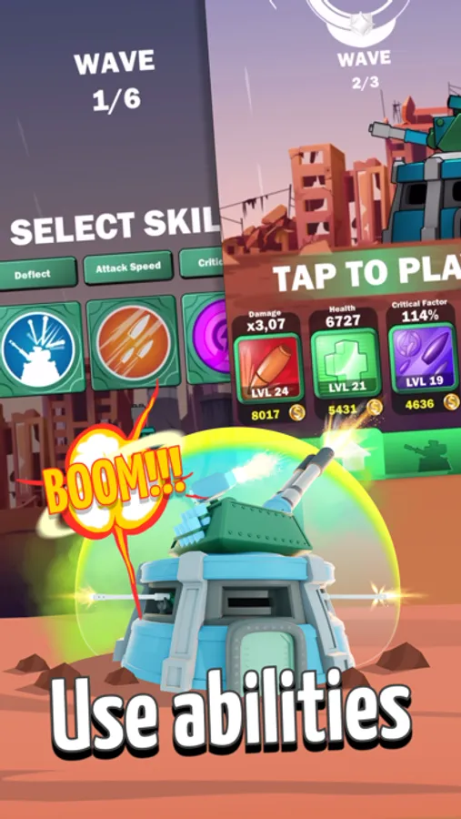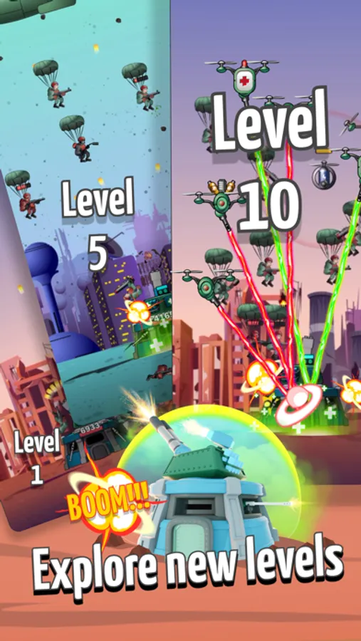 The more powerful the enemy is, the more advanced weapons will be required to tackle the opponent. Choose between an anti-aircraft gun, a shotgun, a gatling gun, a laser, a rocket launcher, and the cannon for the hottest showdowns! Do not forget about a whole range of skills that can be used on the battlefields.