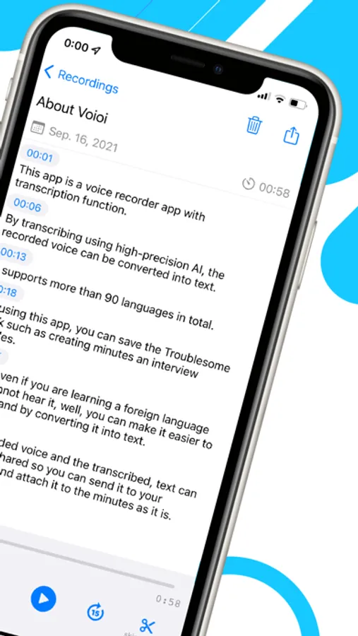 Welcome to the world of Voioi! A voice recorder app that is powered by the latest technology in voice transcription. Voice-to-text transcription was never so flawlessly simple ever before! Voioi downloaded on your iPhone or iPad uses precision Artificial Intelligence to transcribe. User-friendly features make working with this new-age voice-to-text app extremely convenient.