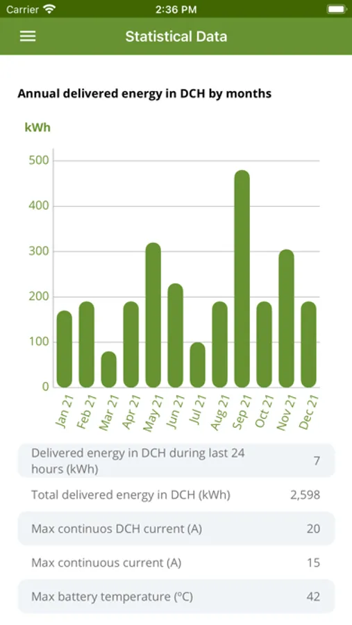 • Statistical data: View the energy consumption used by our batteries in the last 24 hours, in the last month and even since it started.