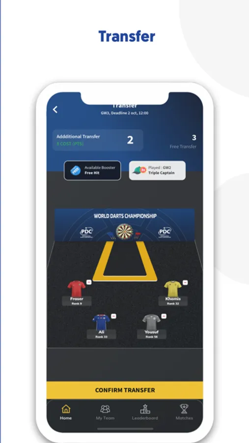 - Make transfers and mould your team as the competition progresses towards the World Darts Championship Final
