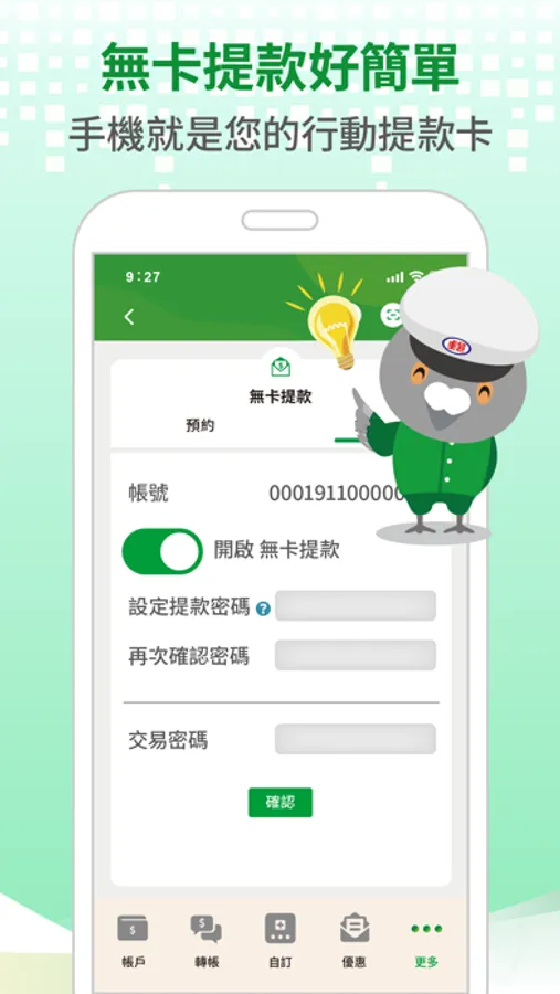 五、 無卡提款:無卡提款好簡單,手機就是提款卡,不帶錢包也能領。
