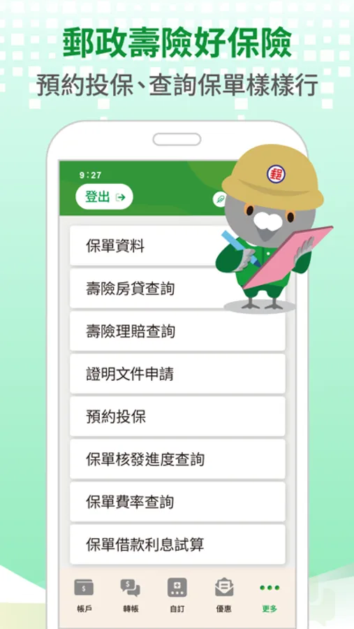 「行動郵局」APP為你打造簡單又方便的使用者介面,主打快速掃碼收付、轉帳、無卡提款、線上繳費、郵件及保單查詢等功能。現在就把郵局放入口袋中,讓啵鴿帶你掌握郵局方便又快速的各項服務及最新優惠訊息。