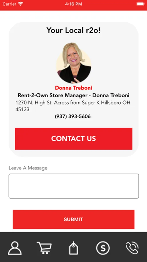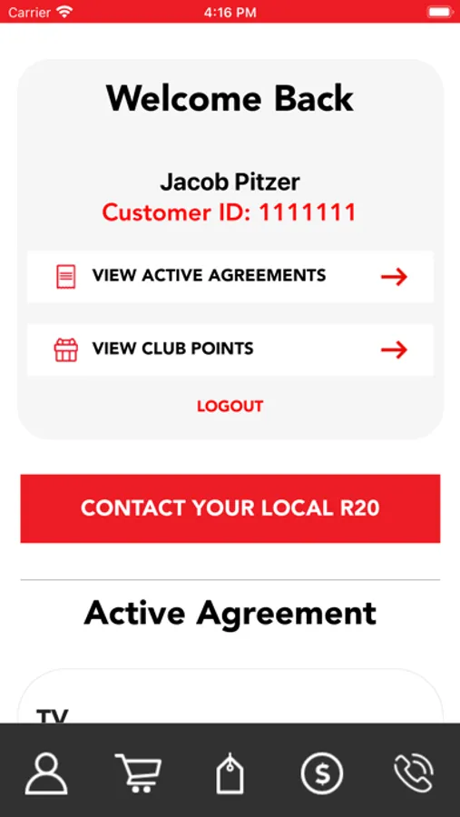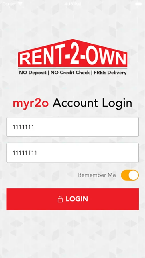 The Rent 2 Own mobile app allows customers to manage their account , Shop products, Receive discounts, and contact support