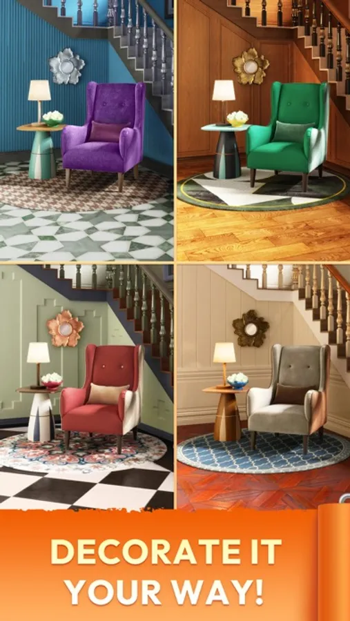 - Each room has its own story and name, learn about different interior design styles in Decor Match!