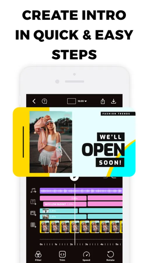 Intro maker includes huge amount of ready to use templates to make your movies, clips, and intro video in a minute.