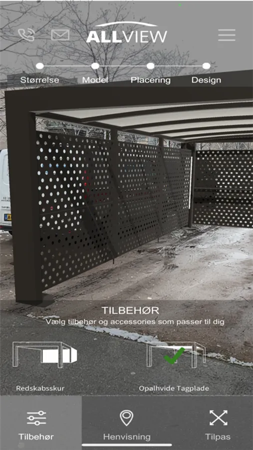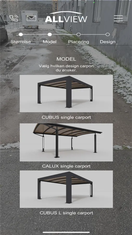 Med denne nye visualiserings app, kan du få en realistisk oplevelse af hvordan en carport og/eller skur løsning fra Allview Carporte vil se ud ved netop dit hus. Download app’en og vælg den carport eller skurløsning du leder efter og oplev hvordan dette realistisk kommer til at se ud ved dit hus.