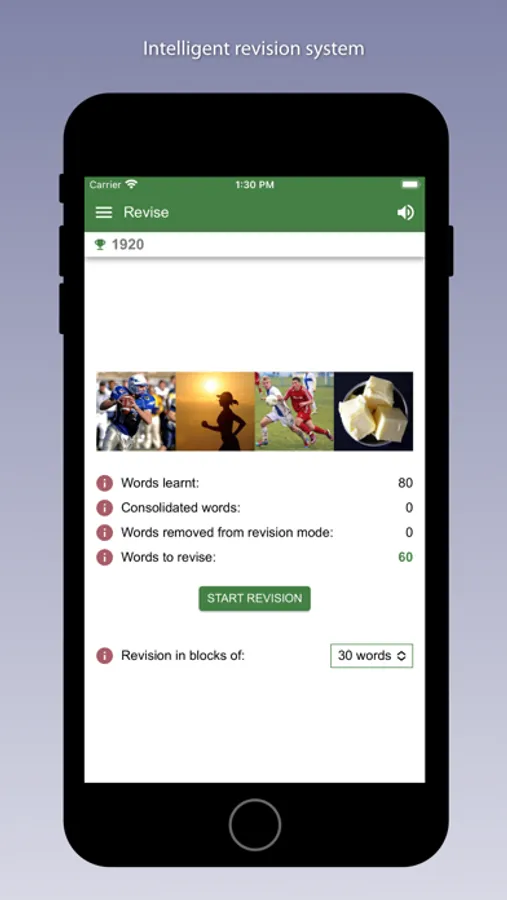 - Intelligent revision system which will make you revise the word according to your hits and mistakes. The more often you get a word wrong, the more often this word will be revised until you remember it.