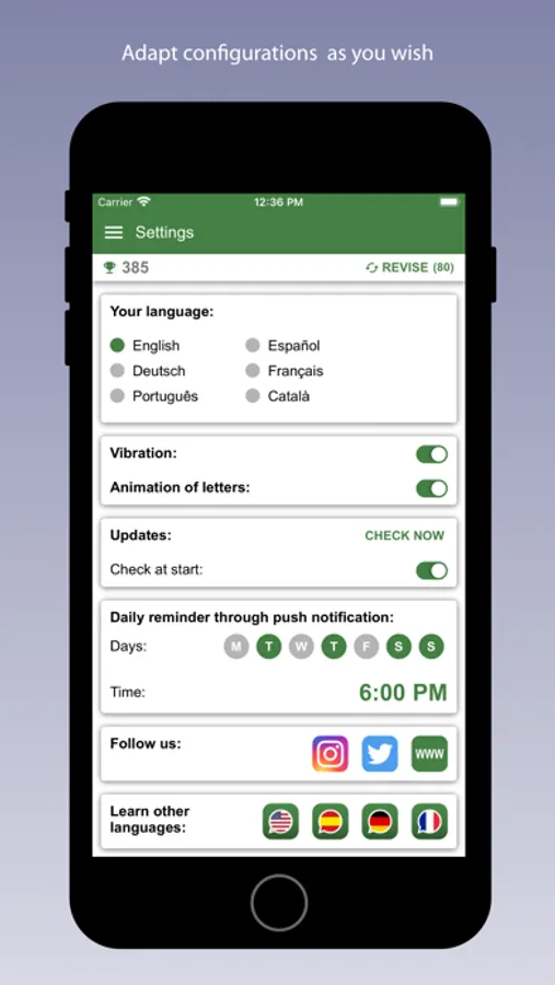 - Multi-user system: The app can be used by several users. Each user can access one’s own account with a password and have the progress saved. Perfect for families or couples who share the same device, like a tablet.