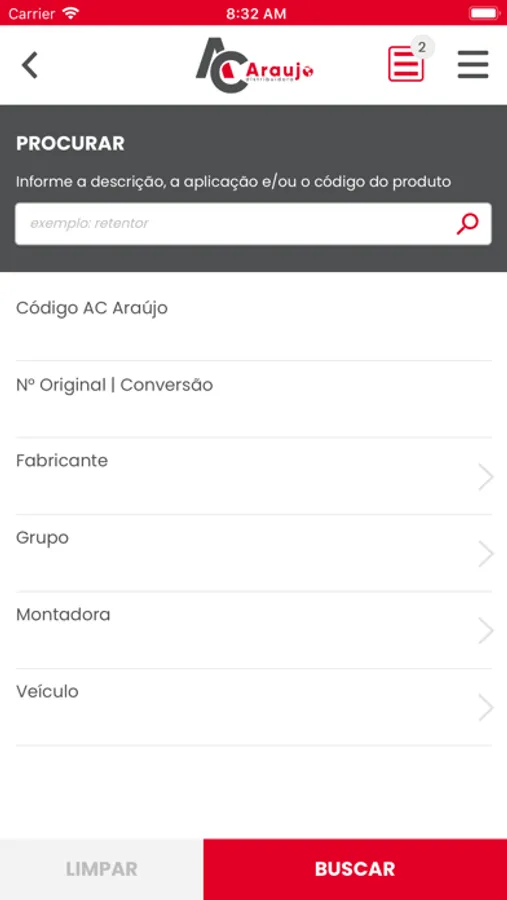 Com o catálogo eletrônico da AC Araujo será possível pesquisar todos nossos produtos vendidos bem como suas aplicações, códigos e informações técnicas.