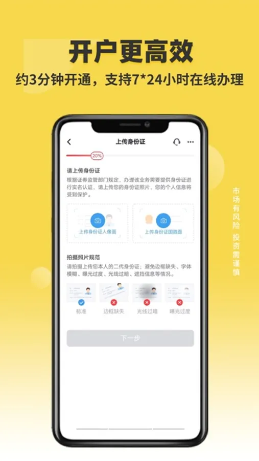 2、开户更高效:单双向视频见证任君选择,3分钟极速开户,支持7*24小时全天候办理。