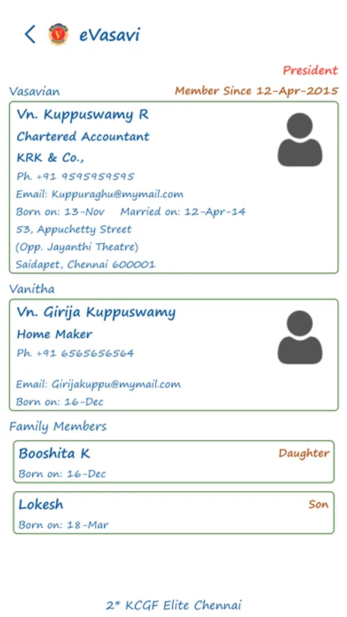 A dedicated App for Vasavi Club members that are part of Vasavi Club Elite Chennai (and soon other clubs that are part of 1900+ sister clubs under Vasavi Club International) to
