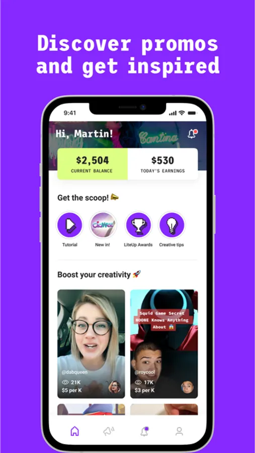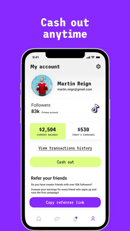 Check your campaigns, track your earnings, connect with us, refer friends and cash out anytime.