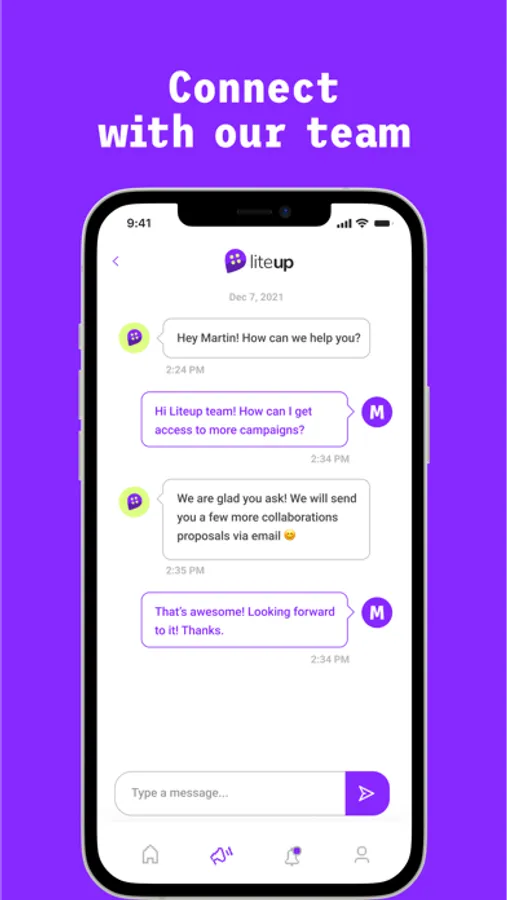Through our mobile app you will be able to visualize your Liteup account.