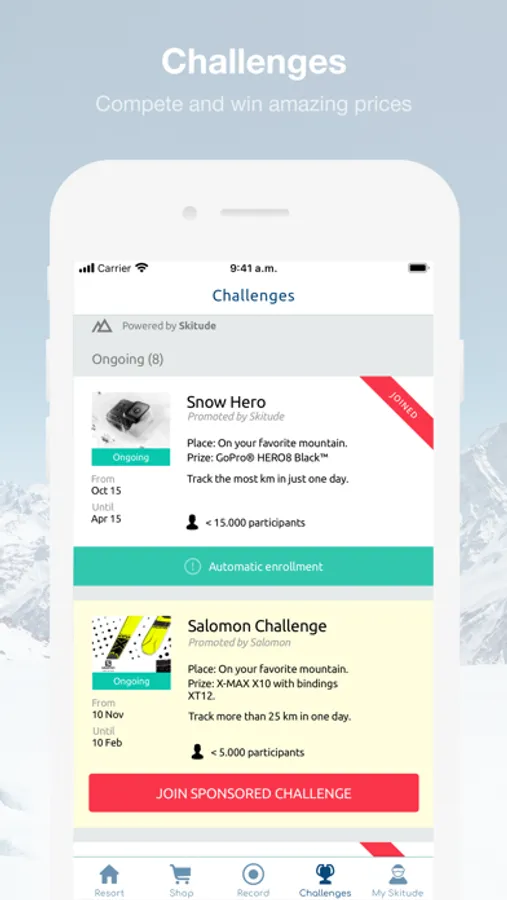 Set up your Skitude profile to track your activities using the GPS tracker. Find out where you are in the season's rankings and try to complete the challenges to be in with a chance of winning great prizes.
