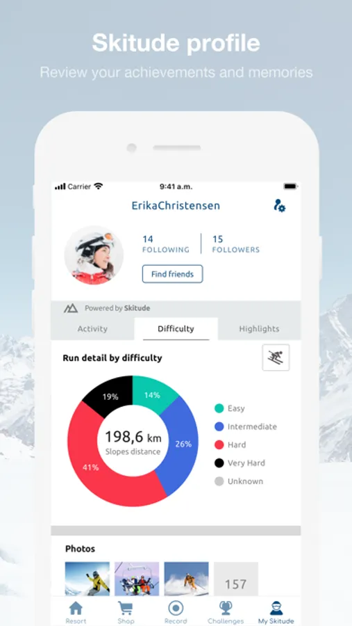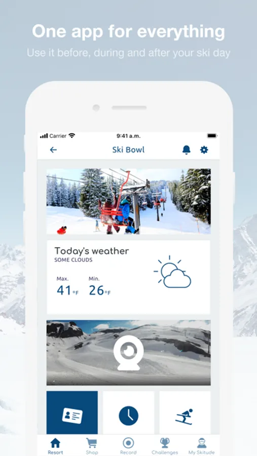 The App offers a range of features designed to optimize your experience before, during and after your trip. It’s very simple, plan your getaway and get real time updates on slope conditions. Set up your Skitude profile and track your activities on the slopes to get detailed stats about all your activities. And that’s not all, take part in challenges competing with the whole community, to be in with a chance of winning incredible prizes.