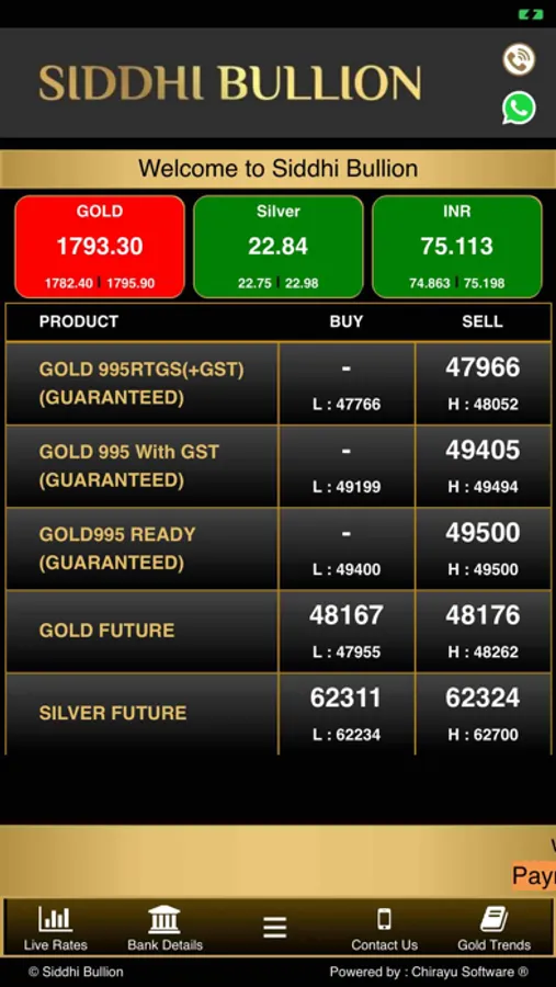 Our app shows the fastest updated LIVE RATES of gold.