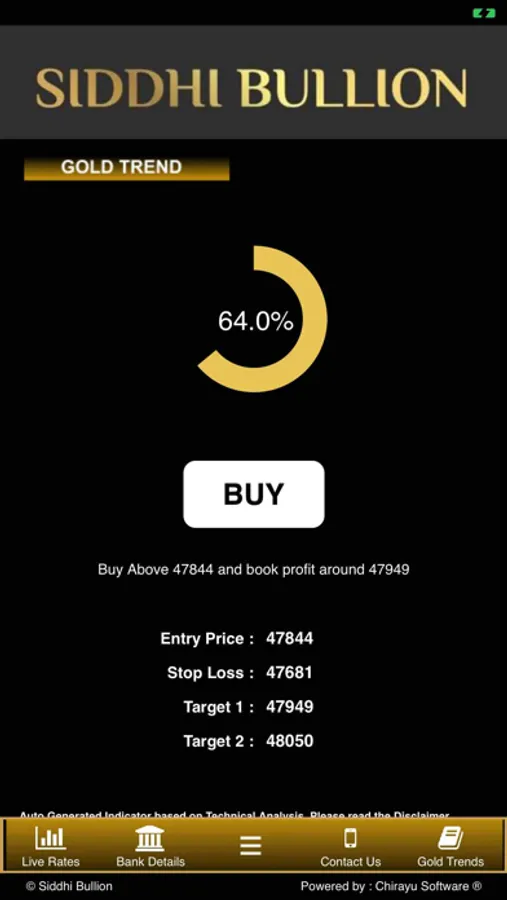 The app has a special feature of predicting GOLD TREND using various analysis tools.
