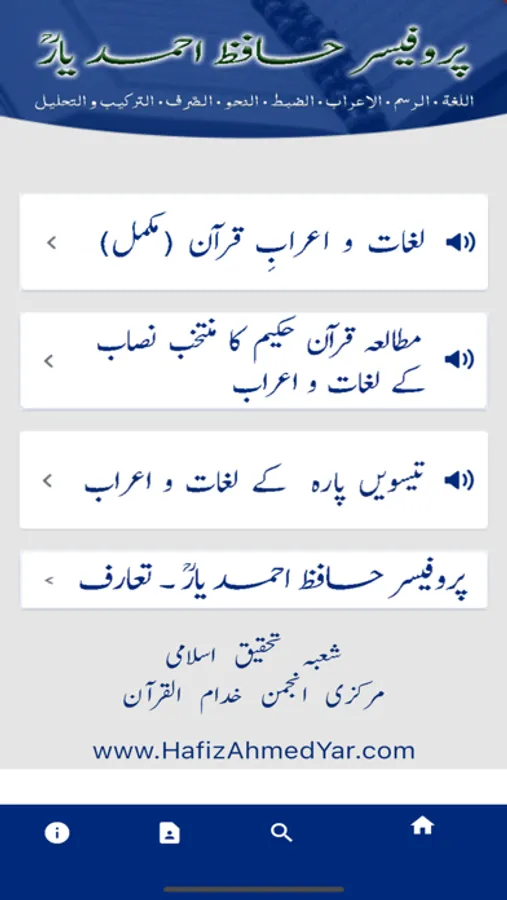 یہ ایپلیکیشن شعبۂ تحقیقِ اسلامی، مرکزی انجمن خدام القرآن کےزیرِ اہتمام تیار کی گئی ہے۔ علومِ قرآن کے ذیل میں اس ایپلیکیشن کو اردو زبان میں منفرداور جامع ترین ہونے کا اعزاز حاصل ہے۔