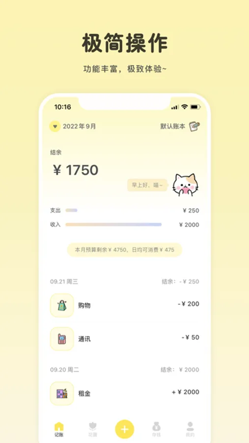 ·预算功能:设置月度预算和分类预算,不用担心超支了