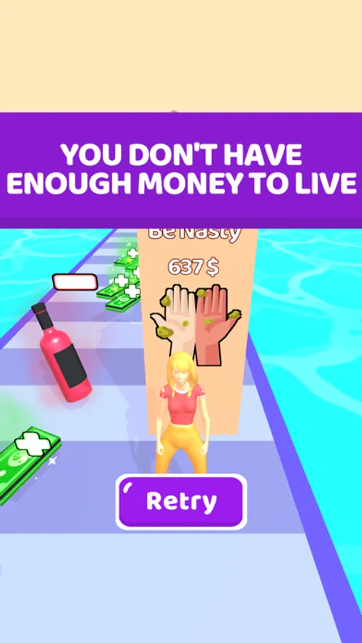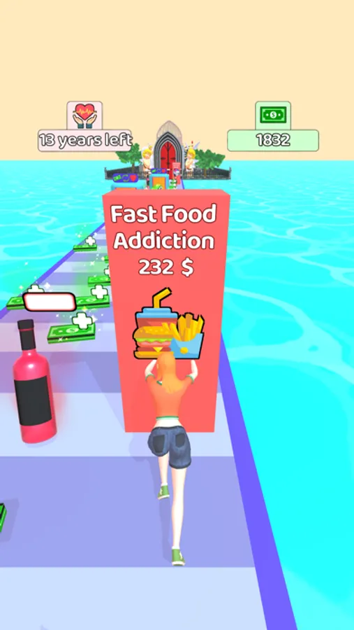 You have to collect money for a longer life and convert your money to life at exchange points. Let's see how long you can live! There may be some health problems, be careful!