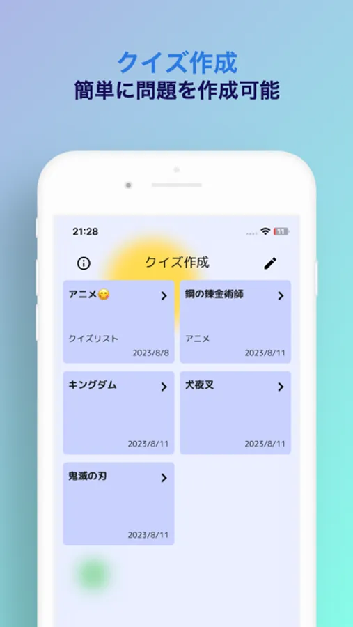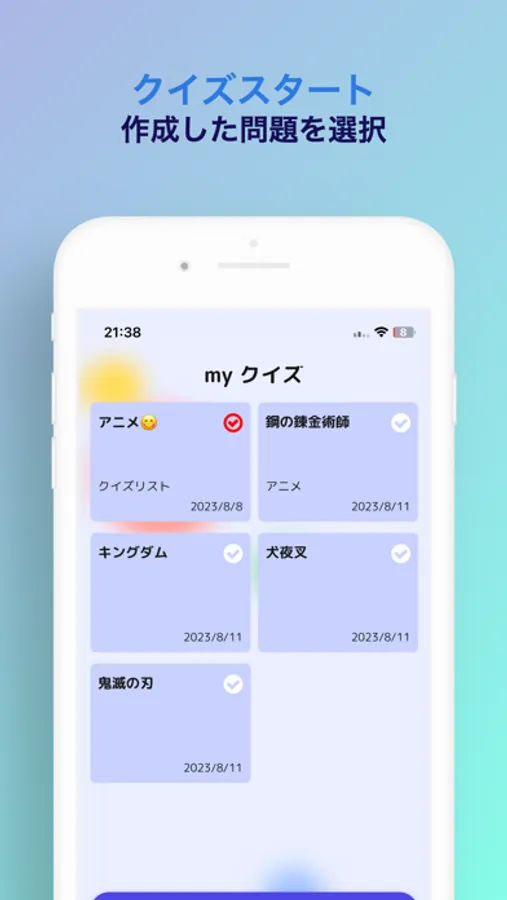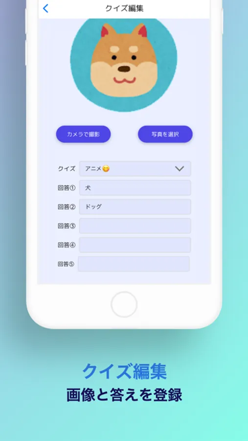 ご自身で作成した写真+回答の組み合わせをクイズにすることができるので、自分オリジナル問題が作成できます。