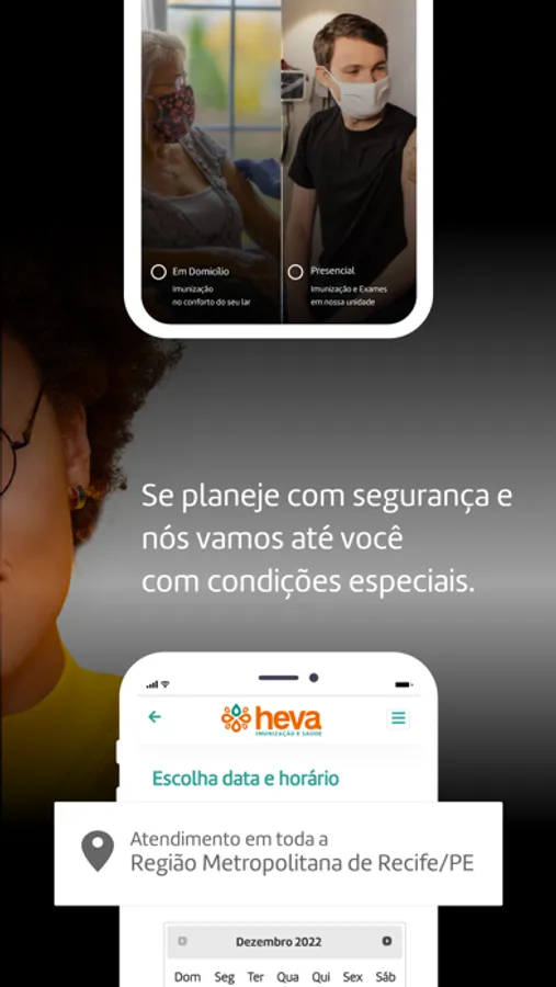 A Heva Saúde e Imunização, focada em inovação para o bem-estar de seus pacientes, disponibiliza neste aplicativo o histórico de vacinas aplicadas nas suas clínicas ou externamente com detalhes de cada imunização.