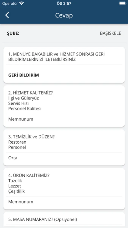 Paylaşılan görüş ve öneriler işletme yetkilisine anında iletilir. İşletme yetkilisi görüş ve öneriyi anında görüntüleyebilir. Dilerse daha sonra da görüntülemeye devam edebilir.