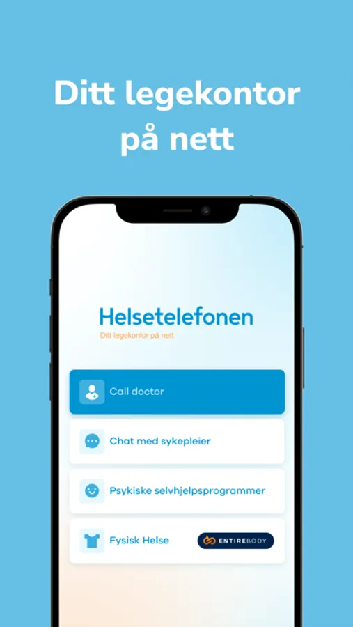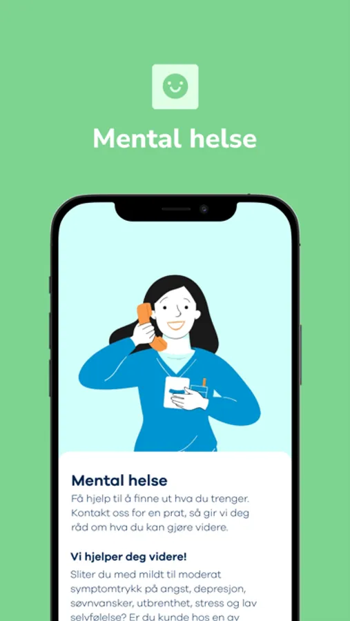 Via appen kan du kontakt oss direkte på telefon eller helsechat.