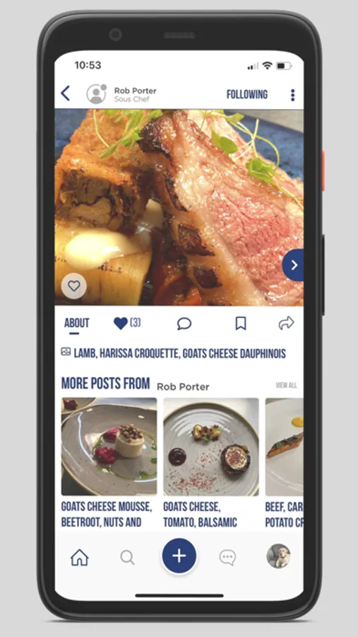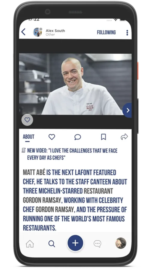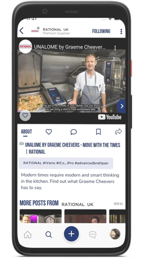* Share videos of your latest dishes or simply great food you have seen with other chefs in your network