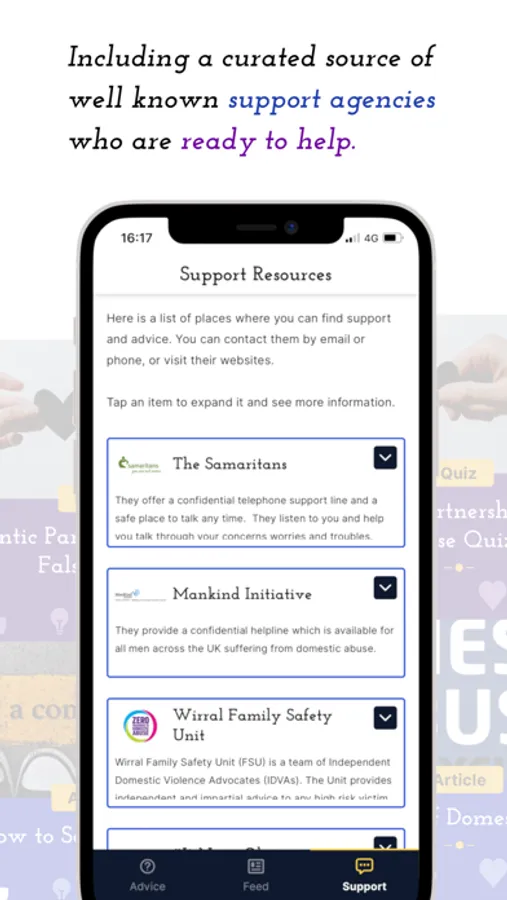 It provides contact information on various support agencies who are able to support individuals with any concerns about unhealthy relationships and/or domestic abuse.