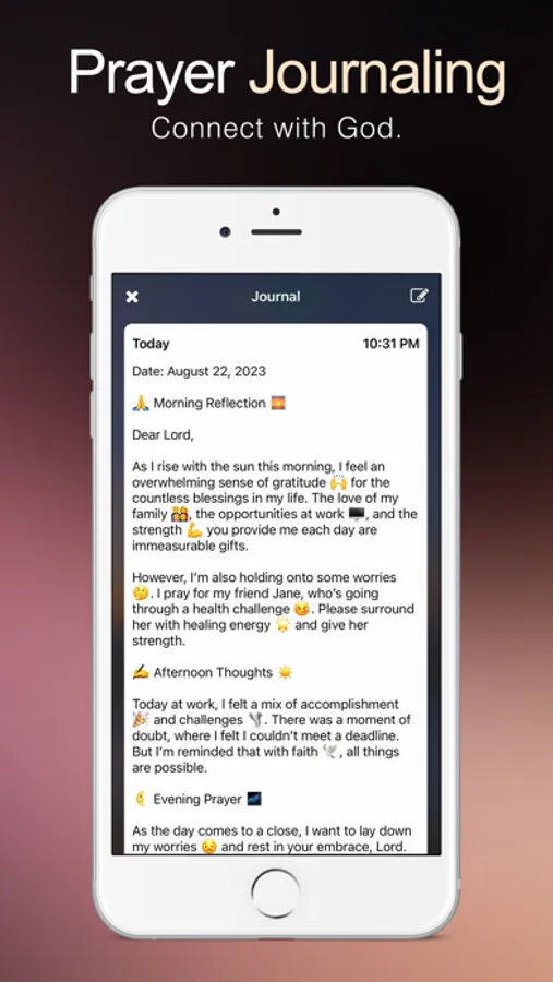 This app reminds you to meditation on His Holy Word with specific quotes from the Bible to grow your relationship with Jesus Christ and find peace, as you incorporate Christian Meditations & Prayer Journaling into your daily routine.