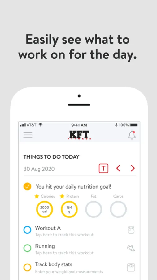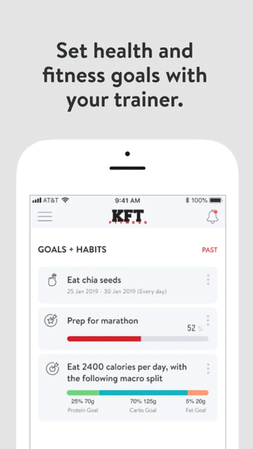 With the KFT FITNESS HEALTHY HABITS App, you can start tracking your workouts and meals, measuring results, and achieving your fitness goals, all with the help of your personal trainer.