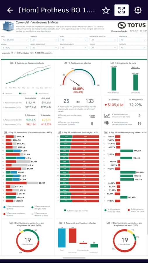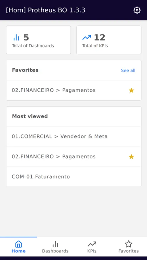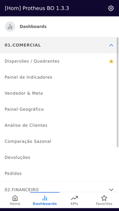 O aplicativo consolida as informações da sua empresa em dashboards dinâmicos e intuitivos, que permitem uma gestão de indicadores e resultados muito ágil, proporcionando uma tomada de decisão muito mais segura.