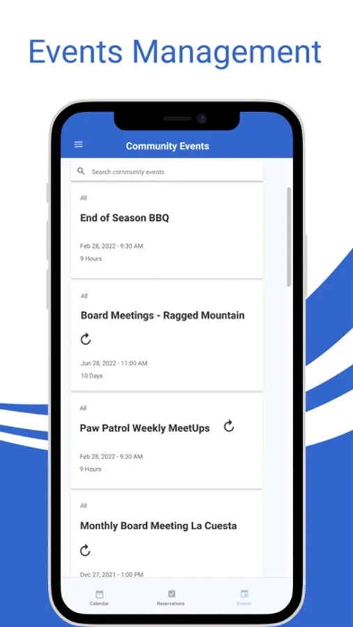 - View community events on the calendar