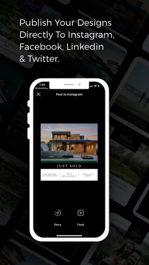 We provide the best, most head turning real estate social media marketing templates for your personal brand. At the same time, our mobile design app gives you more.