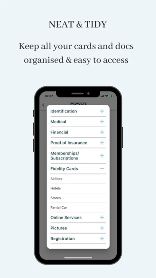 DOXI keeps copies of all your cards and important documents with you, in one place, for quick and easy access and sharing.