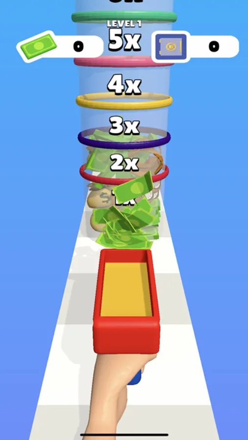 Flip money bales to rise your money stacks. Use ATMs to deposit your money.