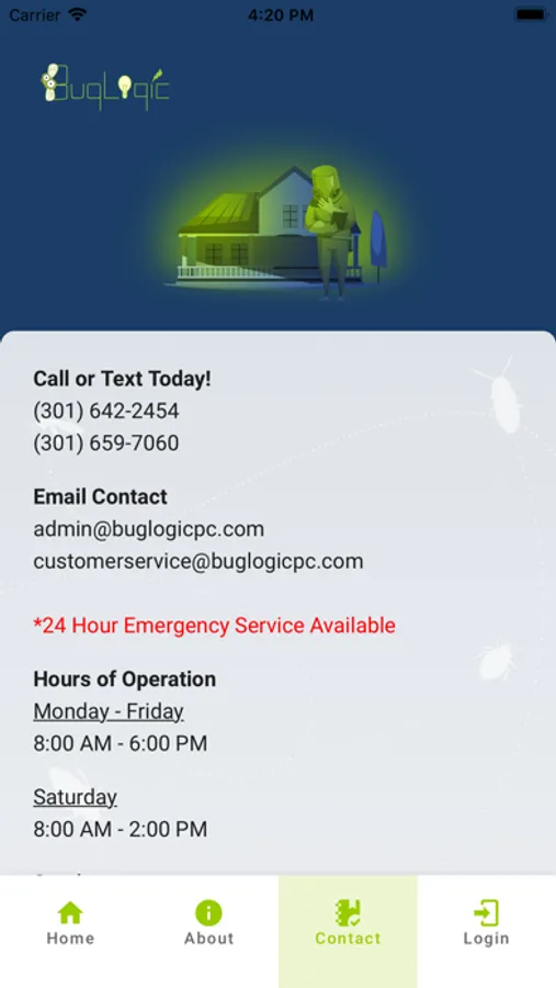 At BugLogic, 24 Hour Emergency Services are available, upon urgent requests.