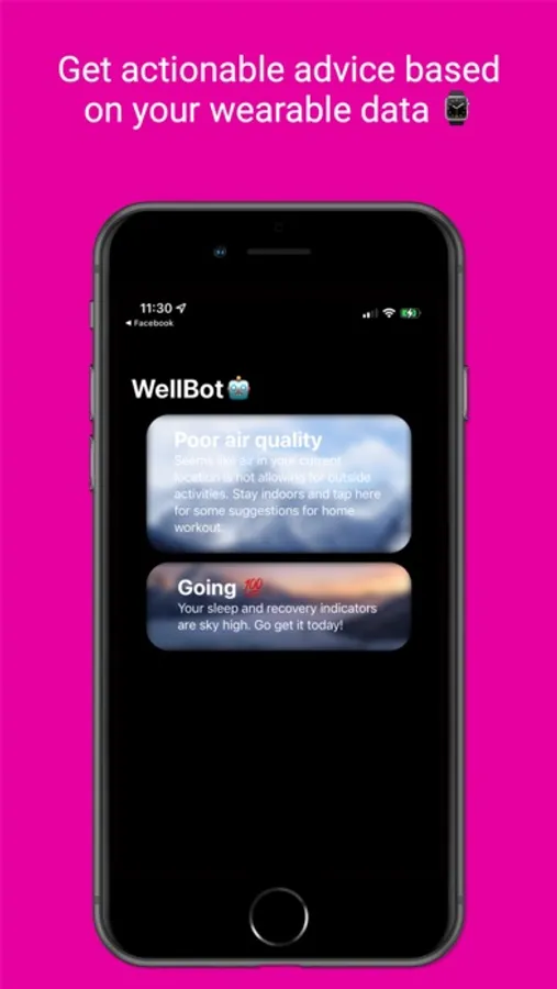 Wellbot collects data from your favorite wearables and turns it into actionable, personalized health & wellbeing advice.
