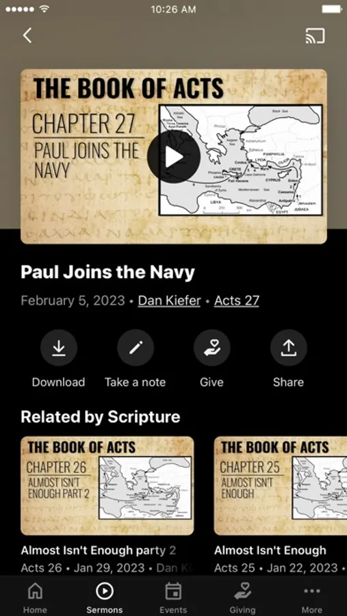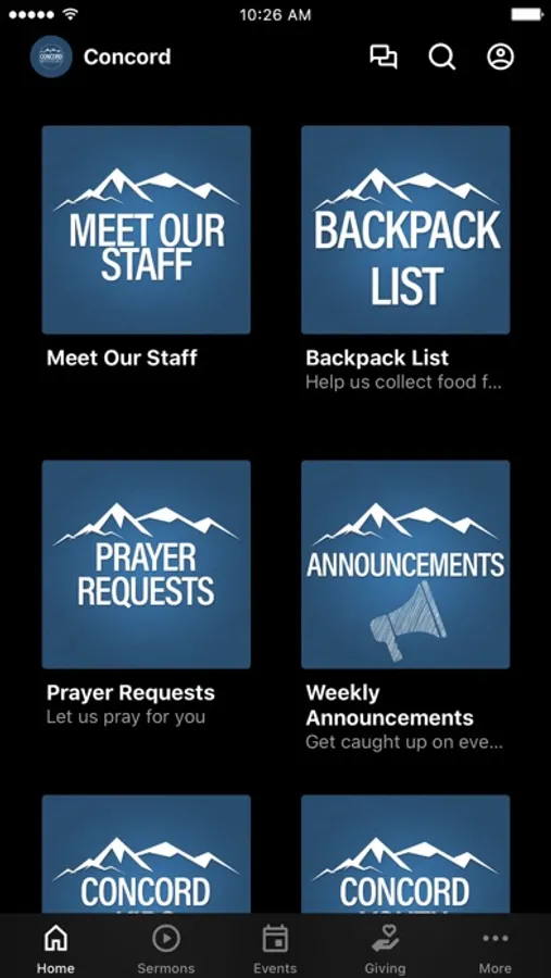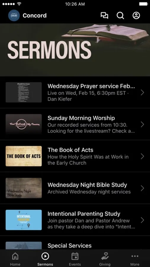With our app, you can stay connected with the events tab, catch up on any services or live streams, stay up to date with everything going on at Concord, and even take notes during Pastor Tom's sermons.