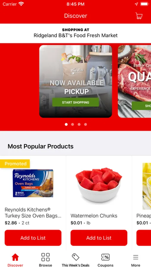 Use your past orders to quickly select and order your groceries, leveraging your favorites, order history and recommended items. Just browse the weekly ad or the entire store, select your items and order for pickup or delivery, where available.